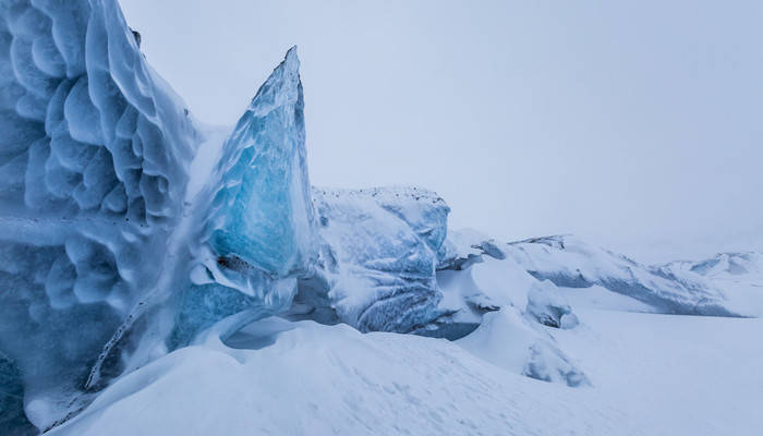 北极地区属是不折不扣的冰雪世界,但由于洋流的运动,北冰洋表面的海冰总在不停地漂移、裂解与融化,因而不可能像南极大陆那样经历数百万年积累起数千米厚的冰雪。所以,北极地区的冰雪总量相当于南极的1/10,大部分集中在格陵兰岛的大陆性冰盖中,而北冰洋海冰、其他岛屿及周边陆地的永久性冰雪量,仅占很小部分。
