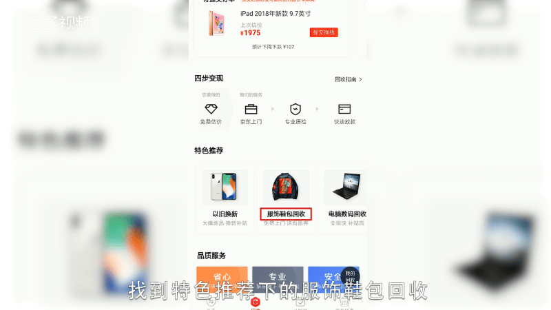 下滑,找到特色推荐中的服饰鞋包回收