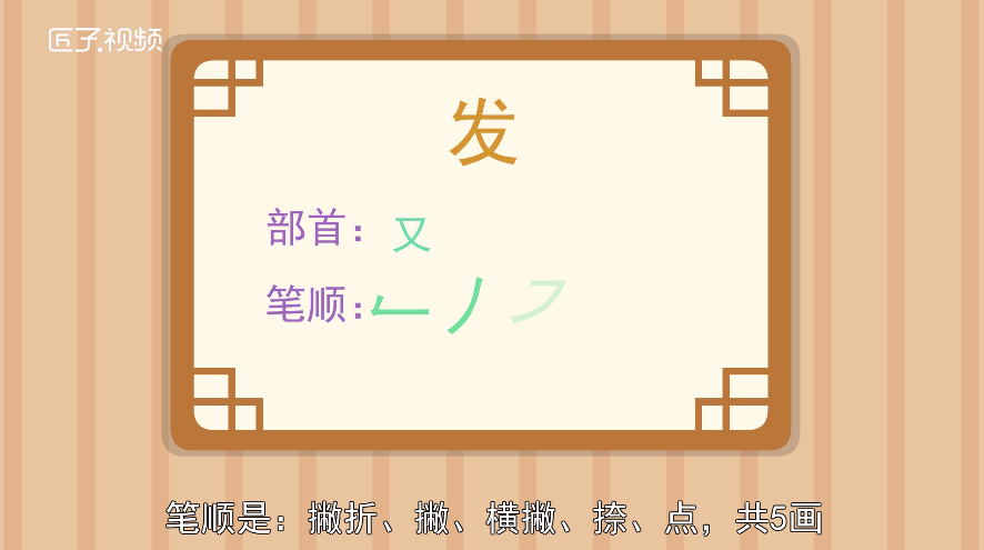 发冷枪,总计3个汉字。我们先来看第一个汉字:发,发字半包围结构,部首为又,笔顺是:撇折、撇、横撇、捺,共5画。第二个汉字:冷,冷字左右结构,部首为冫,笔顺是:点、提、撇、捺、点、横撇、点,共7画。第三个汉字:枪,枪字左右结构,部首为木,笔顺是:横、竖、撇、点、撇、捺、横折钩、竖弯钩、共8画。所以发冷枪共20画。