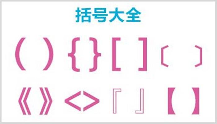 括号主要分为四类,包括大括号(或说“花括号”)“{}”、中括号“”、小括号“()”以及较少用的括线“─”。