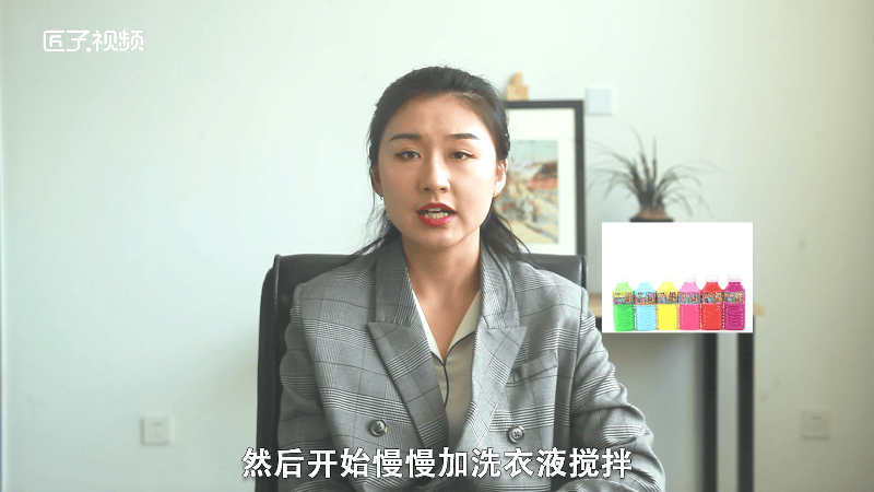 然后加水搅拌,搅拌到一定程度,就加入洗衣液,洗衣液不要太多,不然会成泡沫。这个时候加入颜料,想要什么颜色就加什么颜色,然后开始慢慢加洗衣液搅拌,一定要慢慢加,并且如果太稀就再加胶或者白乳胶。随着加洗衣液,慢慢会成为粘稠的还带稀的东西,虽然比较恶心但是马上就成功了,再搅拌几下,就做成了。
