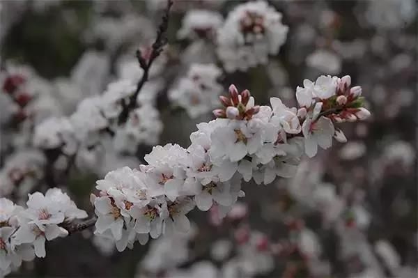 樱桃:属于蔷薇科李属,植株比较高大;开花期较早于樱花,樱桃的花瓣较小且花色单一,以白色为主,观赏性不高。