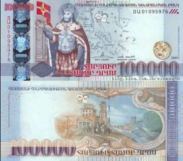 14.亚美尼亚的法定货币叫亚美尼亚德拉姆,面值里面有10000、20000、50000、100000的。