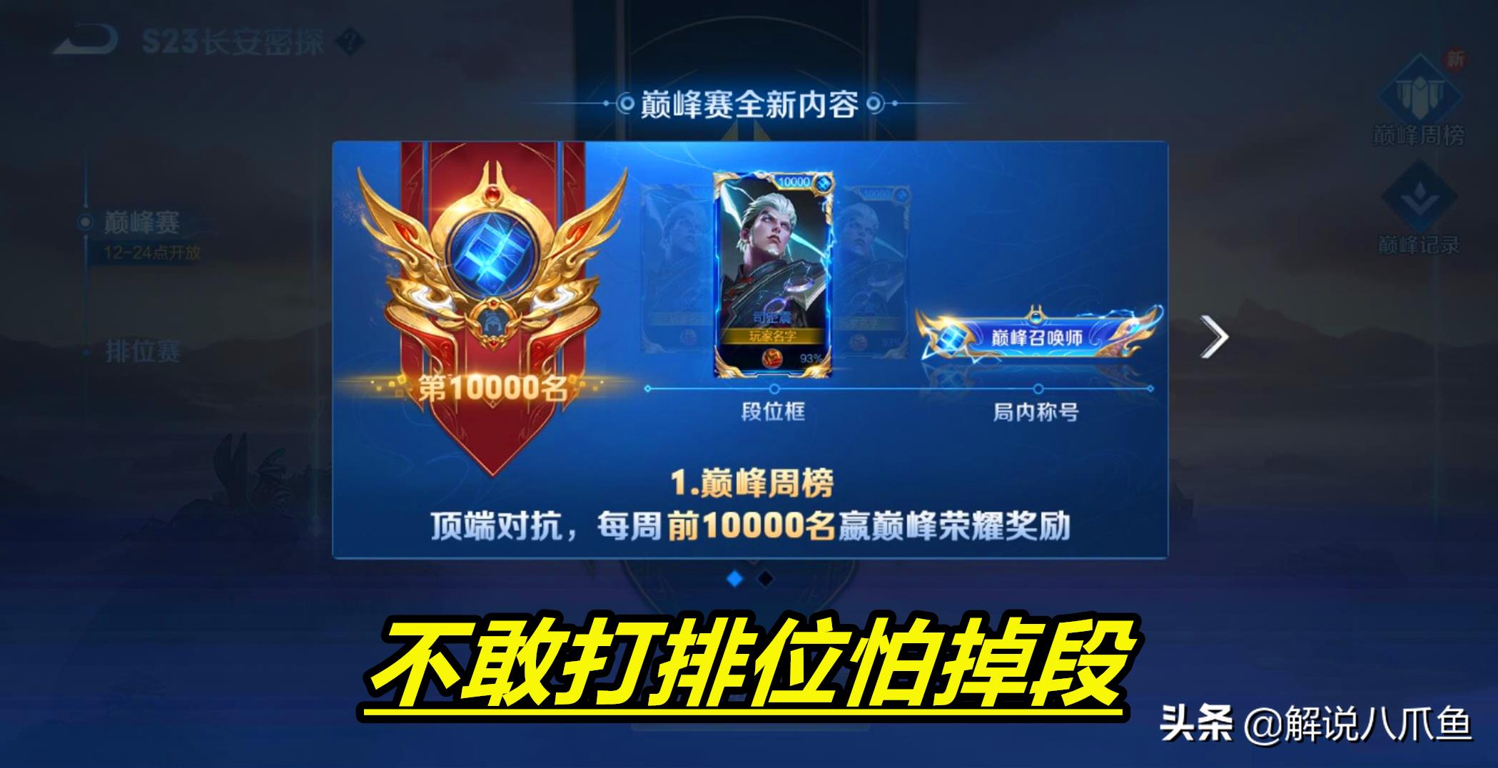 他们深知道自己的实力水平不足,继续打就大概率会掉下来,然后又很难打上去,不打也会掉,就会通过打巅峰赛来维持自己当前的段位,就不再继续去打排位赛了,一般被带上去或者代练的玩家就会选择这种方式。