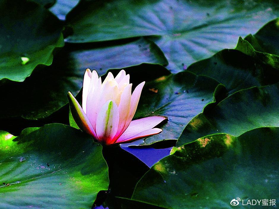 阳光下,红三叶草在空中舒展叶片;水面的睡莲慢慢打开花瓣,像美人一样苏醒;合欢树的微小羽片撑开淡粉色的伞房,花团锦簇、任性肆意。