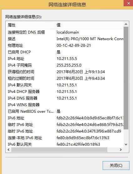 在Windows系统里,选择查阅“网络连接详细信息”,里面的物理地址(下图中的 00-1C-42-89-28-21)就是电脑网卡的MAC地址。