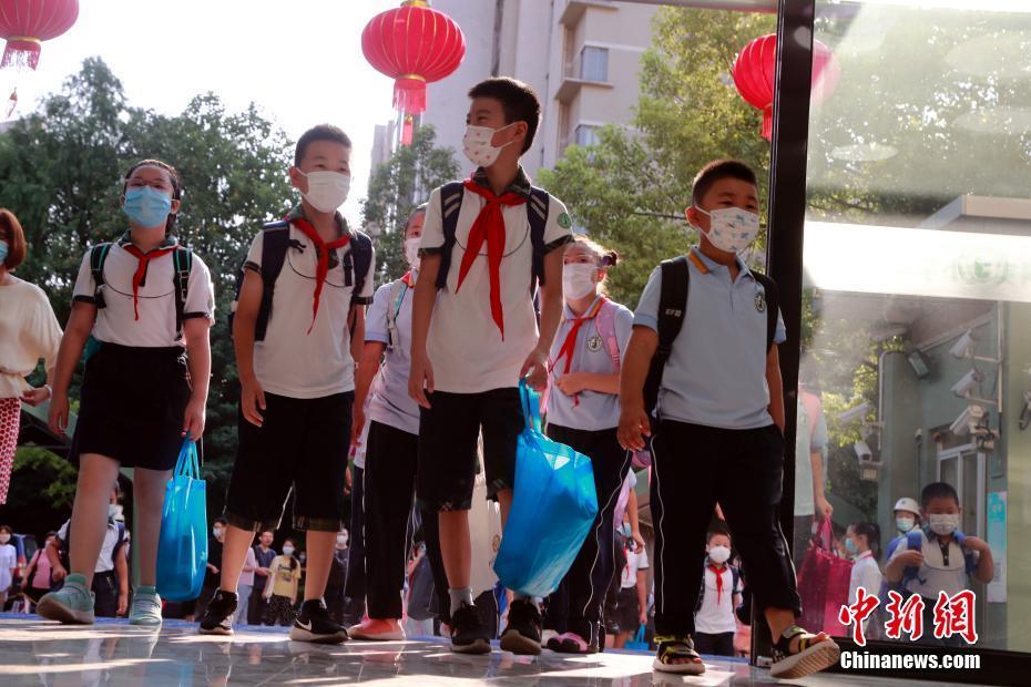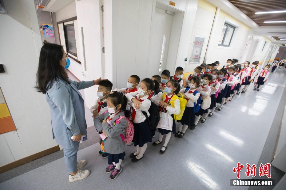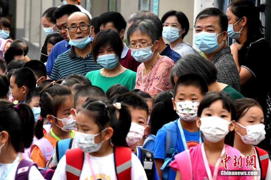 9月1日,太原新建路小学的学生戴着口罩进入校园。当日,山西小学迎来开学日。 中新社记者 张云 摄