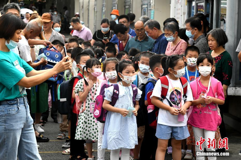 9月1日,丁兰实验学校学生在老师的陪同下进行体能检测。当日,杭州小学迎来开学。 中新社记者 许少峰 摄