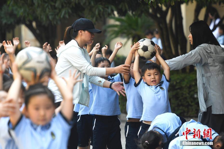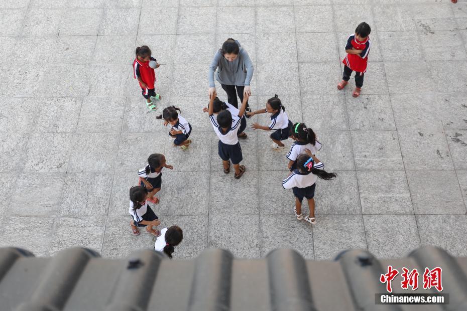 9月1日,付禹课间和学生做游戏。位于贵州省黔东南苗族侗族自治州从江县丙妹镇大歹村的大歹小学,是2019年9月由澳门基金会投资修建完成的一所乡村小学。为提升学校办学质量,2019年11月, 经相关部门协调,贵阳市南明区教育局安排南明小学组建团队,长期驻该校开展教育帮扶工作。从教9年的南明小学语文教师付禹经过申请,成为2021年新驻校的教师,她将在大歹小学开展一年的教学帮扶工作。 中新社记者 瞿宏伦 摄