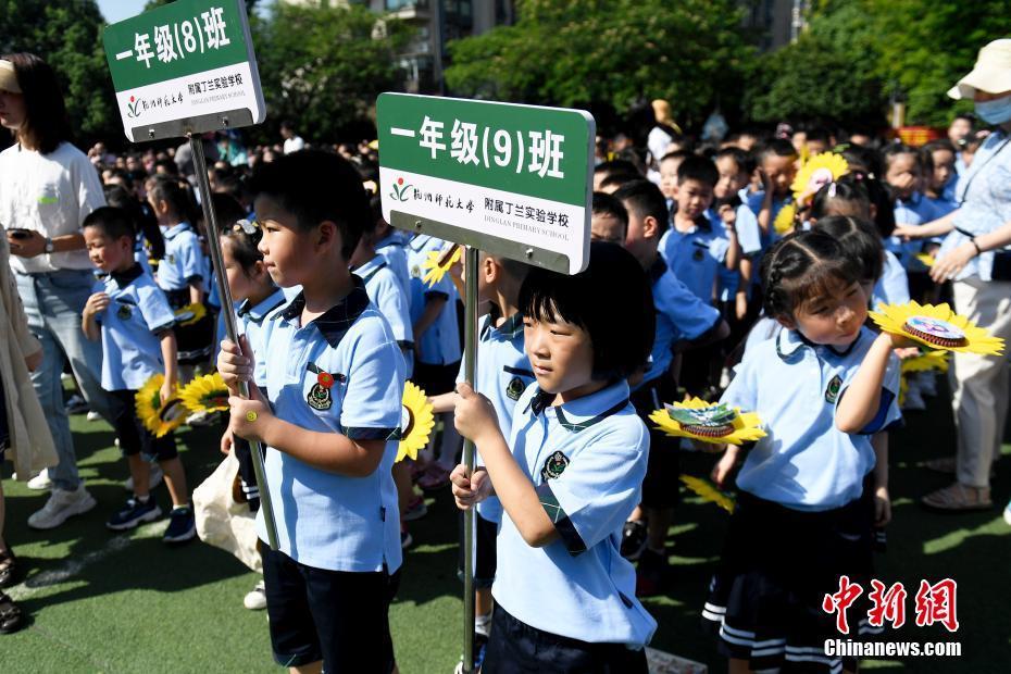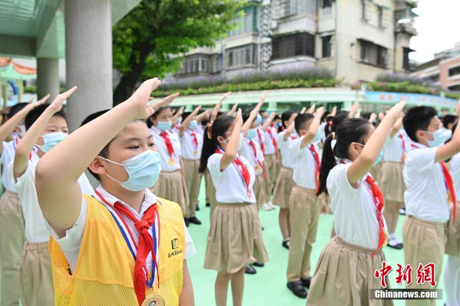 9月1日,广东省广州市,东风东路小学学生参加“战胜自己,人人都是冠军”主题开学典礼。当日,广州各中小学迎秋季开学。 中新社记者 陈骥旻 摄