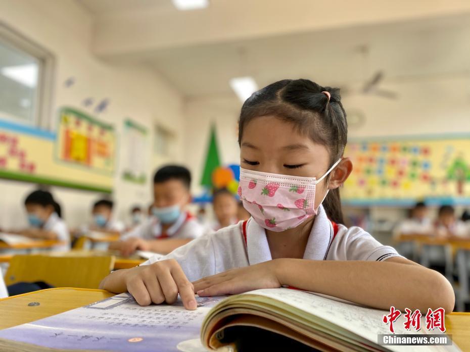 9月1日,雄安新区三县迎来开学第一天,中小学生陆续返校。据了解,雄安新区所有中小学师生员工和幼儿园教职工入学前需完成两次核酸检测(7天内和72小时内各一次)并出具报告,中小学及幼儿园分批分期开学,学生将错峰返校。图为北京市朝阳区实验小学(雄安校区)开学第一课。 中新社记者 韩冰 摄