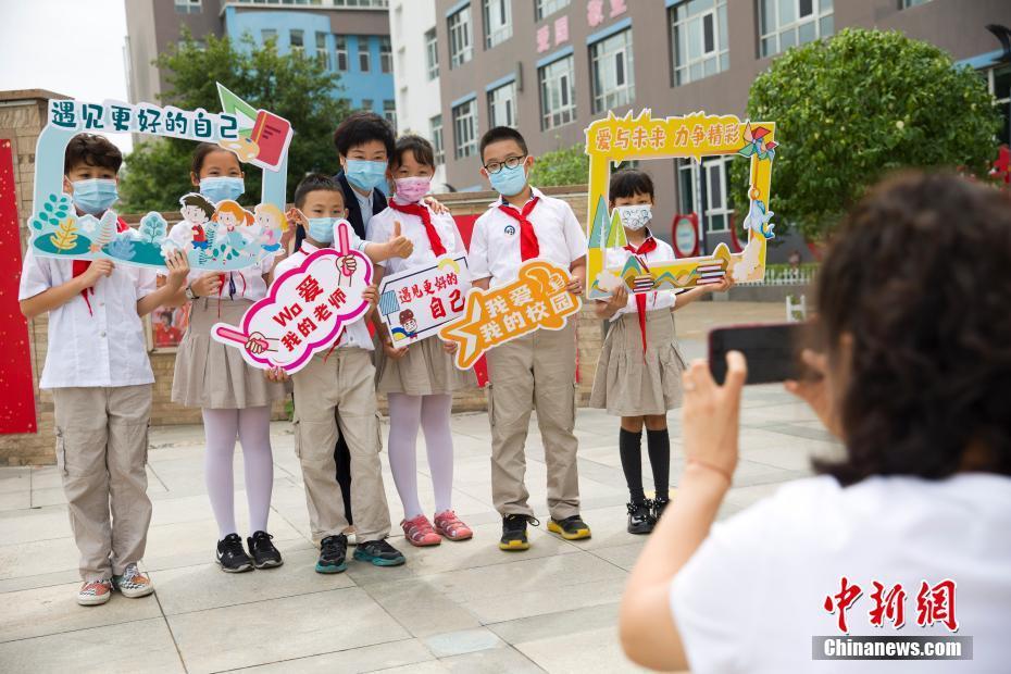 9月1日,太原新建路小学的学生与老师合影留念。当日,山西小学迎来开学日。 中新社记者 张云 摄