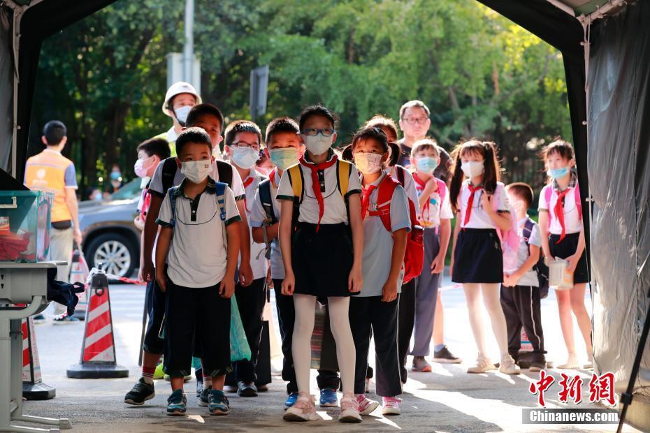 9月1日,雄安新区三县迎来开学第一天,中小学生陆续返校。据了解,雄安新区所有中小学师生员工和幼儿园教职工入学前需完成两次核酸检测(7天内和72小时内各一次)并出具报告,中小学及幼儿园分批分期开学,学生将错峰返校。图为北京市朝阳区实验小学(雄安校区)学生陆续返校。 中新社记者 韩冰 摄