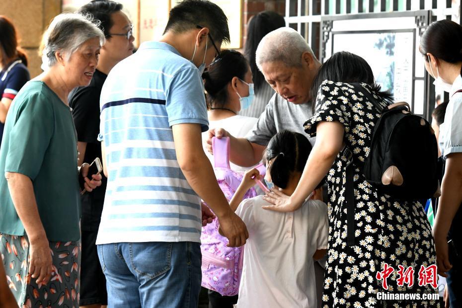 9月1日,福州各小学迎来开学季。一家人一起送一年级新生入学。 王东明 摄