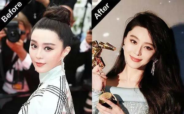 发际线额角生硬,显脸大,选择披发,侧一边。范冰冰戛纳造型中,全部梳上去的大背头,让发际线一览无余,看起有些刻板,不够年轻;选择披发后,遮住一边的额角发际线,脸部线条也能衬托得更加柔和,整个人显得非常温柔动人。