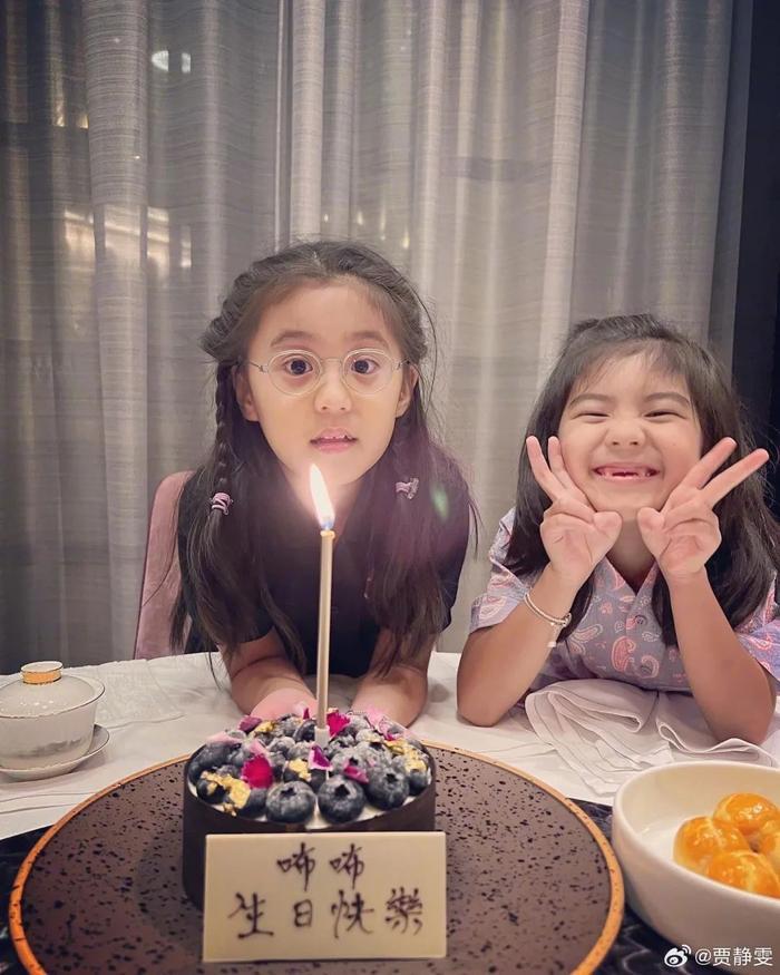 前几天贾静雯晒出了女儿咘咘八岁的生日照⬇️