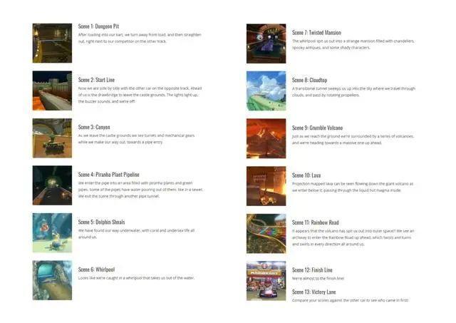 在官方力荐的马里奥赛车(The Mario Kart Ride)项目设施中,由宫本茂本人亲自参与设计,项目采用了双轨竞技模式,会有两条并排的赛车轨道,让游客误以为正在与身边的赛车进行真正的竞赛,轨道和动力系统都是采取了隐藏式设计,让游客在游玩的时候觉察不出来,加强沉浸感。