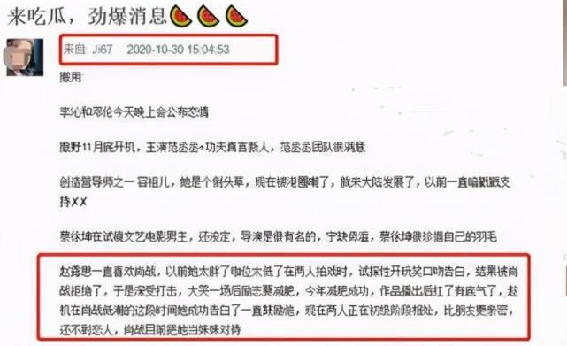 早在30日当晚,就有爆料赵露思喜欢肖战,结果因为太胖不好意思开口,开玩笑表白被肖战婉拒了,走红之后在肖战低谷期表白,目前肖战将她当妹妹对待。这波操作被不少网友质疑是套餐,赵露思也受到非议。