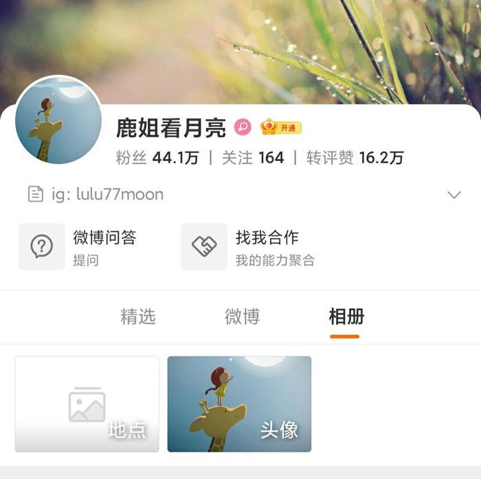 奇怪的是,同一时间里,陈露清空了所有微博相片,也把自己的微博名字给修改了。变成了“鹿姐看月亮”!