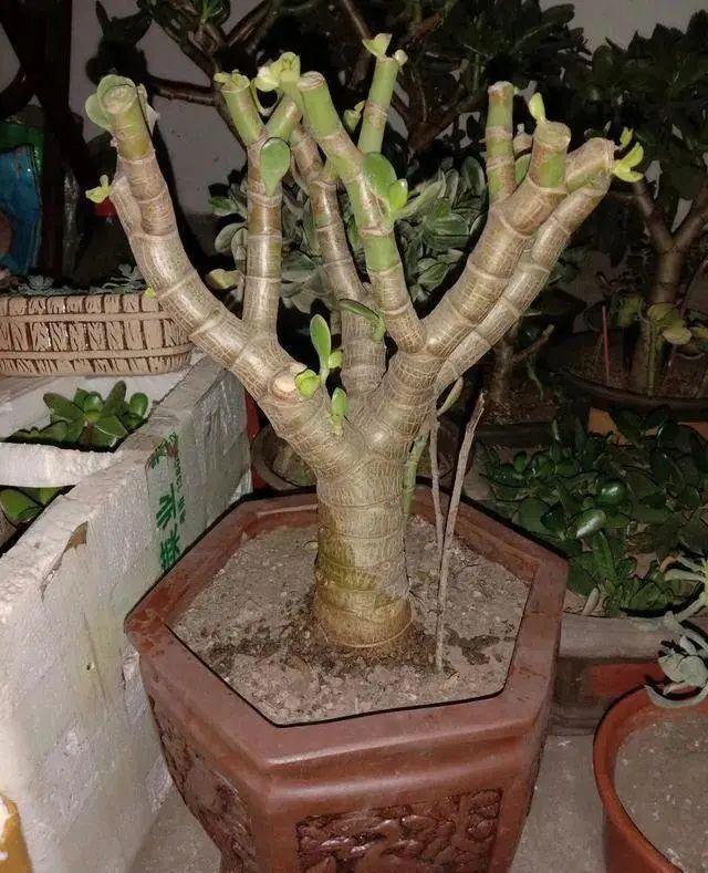以为修剪的下手比较重,重剪的玉树最好往伤口上涂抹一些多菌灵或者草木灰。重剪后的玉树正常养护,很快就会长出许多新的嫩芽。