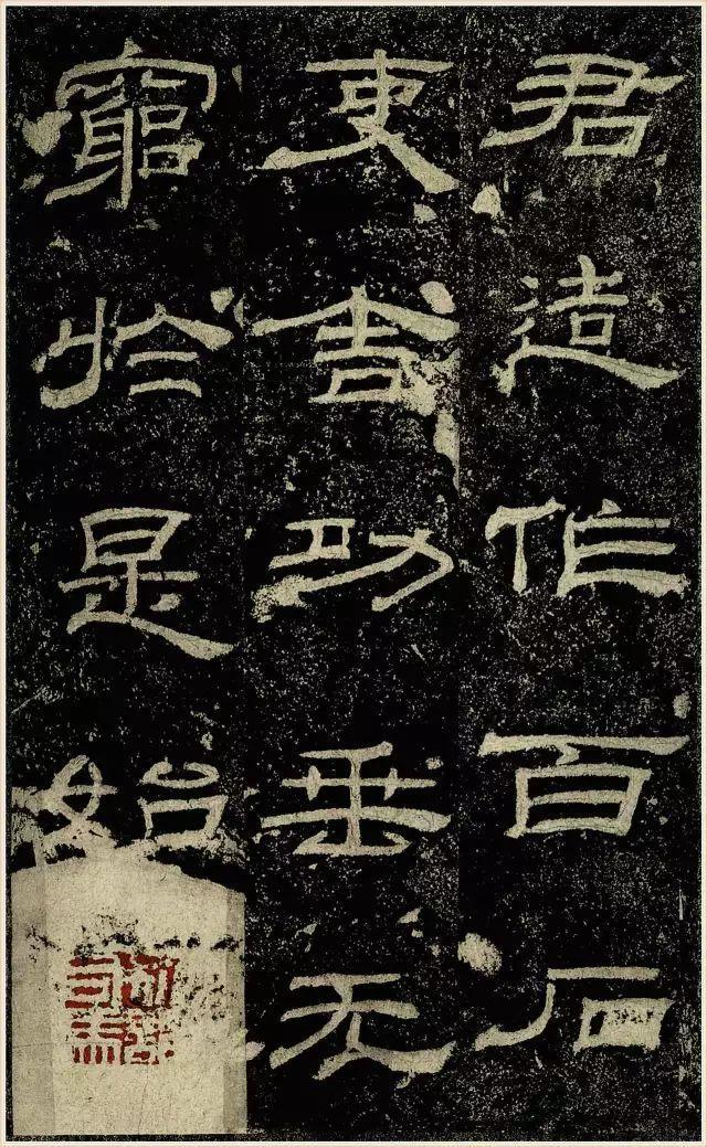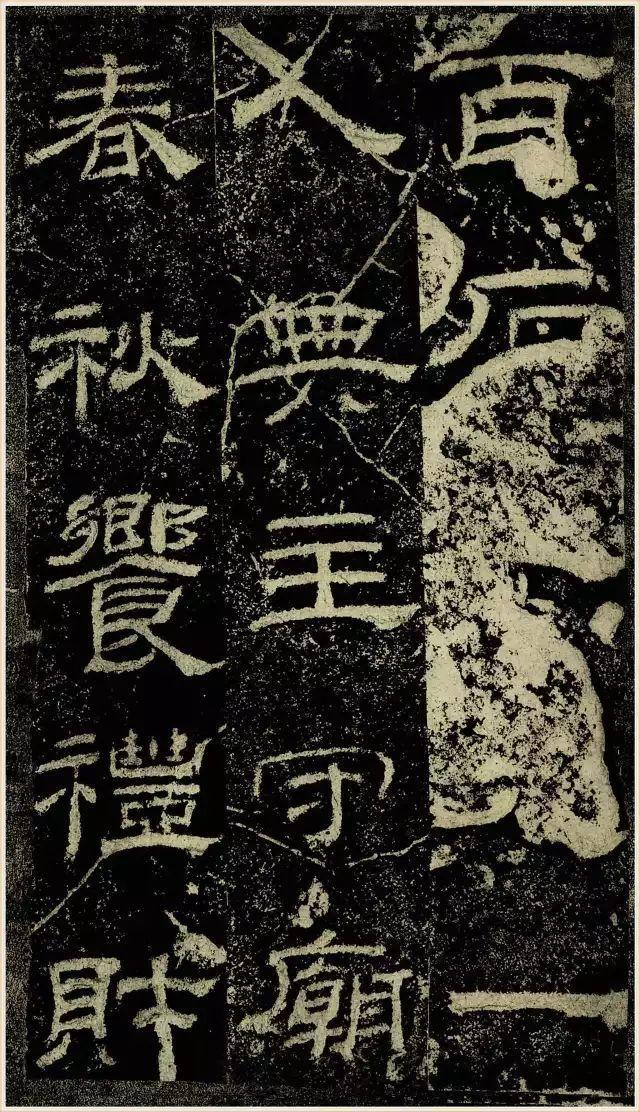 此碑记司徒吴雄、司空赵戒以前鲁相乙瑛之言,乙瑛上书请于孔庙置百石卒史一人,执掌礼器庙祀之事。此碑结体方整,骨肉停匀,法度严谨,用笔方圆兼备,平正中有秀逸之气,是汉隶成熟期的典型作品,属方整平正一路。