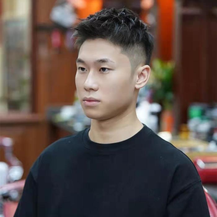 美式寸头非常考验颜值和头型,如果头型不够圆润,脸型太瘦太长剪出来效果不好。对发质没有什么要求,顶部只有几毫米的长度,再细软的头发都能竖起来。