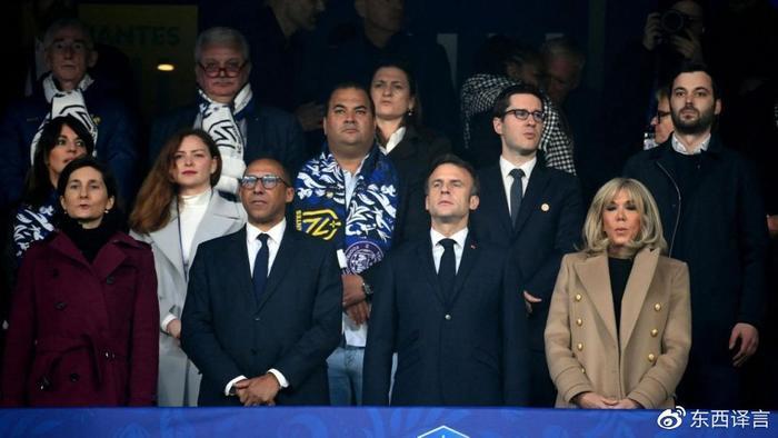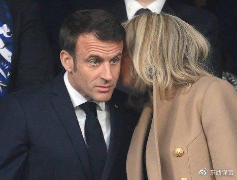 马克龙带70岁爱妻看球,“胆战心惊”,看台上亲密耳语很甜腻