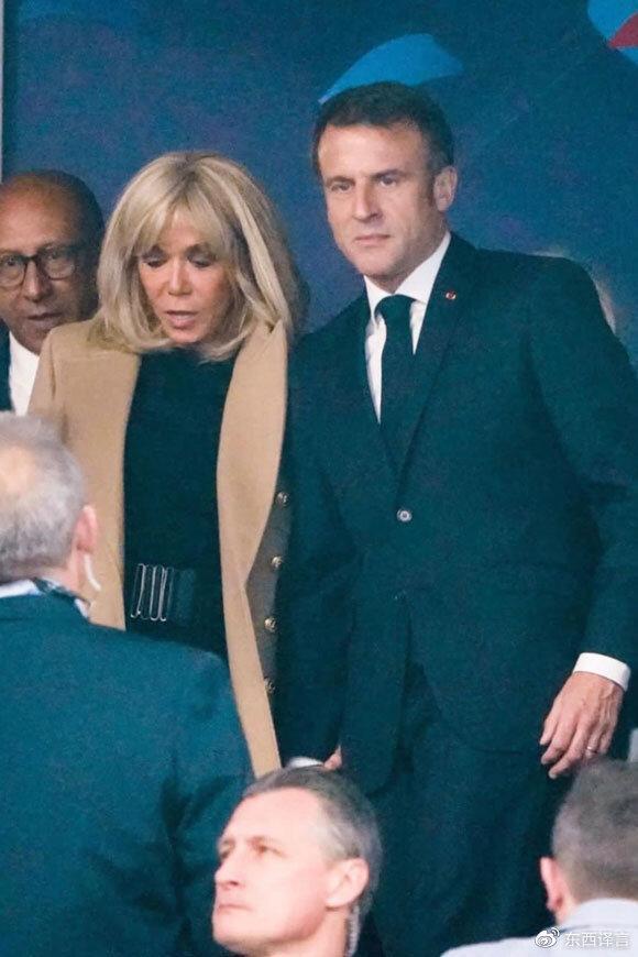 夫妇俩手牵着手走入VIP包厢,相互依偎很是甜蜜。布里吉特看上去还是挺放松的,而且似乎因为没有什么愁事儿,整体感觉很是年轻,乍一看并没有人到古稀的感觉。而另一边,马克龙还是显得有点儿紧张,而且比起5年前,他现在还真是老了不少。