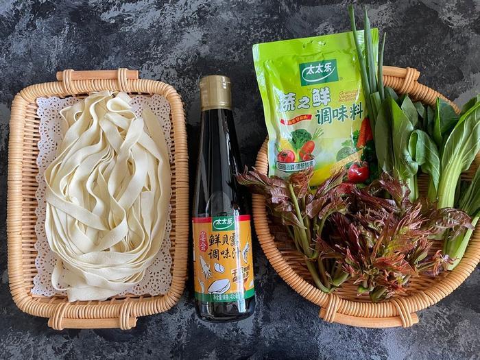 步骤一、首先我们需要把我们所有需要准备的食材都准备好,面条可以自己做,也可以在超市去买,其他的调料也是可以买到的。