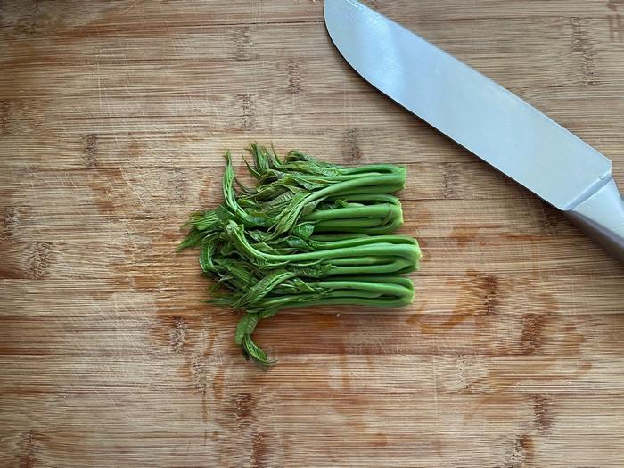 香椿一定要用开水焯一下,可以去掉一些不好的物质,还能保持它的颜色。