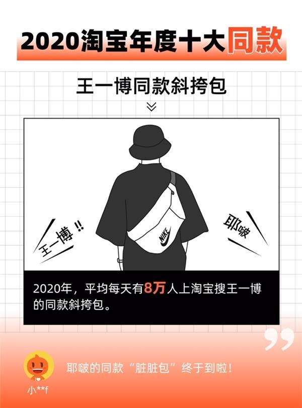2020年,哪些明星同款火了?12月28日,淘宝发布年度十大同款,王俊凯同款水壶、王一博斜挎包、青春有你2的“淡黄长裙”以及秦昊同款的“一起爬山吗”手机壳等今年大火的热门均入选。