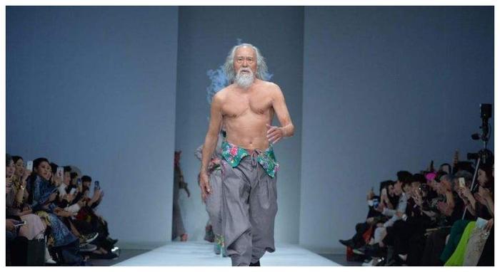 大家还记得2016年的北京时装展的王德顺吗?当时的他是台上年龄最大的模特,上身赤裸着,古铜色的肤色,下半身穿着宽松的灰色长裤,腰间拼接着具有东北特色的印花腰带,一头具有代表性的飘逸灰白色长发,荷尔蒙十足的。