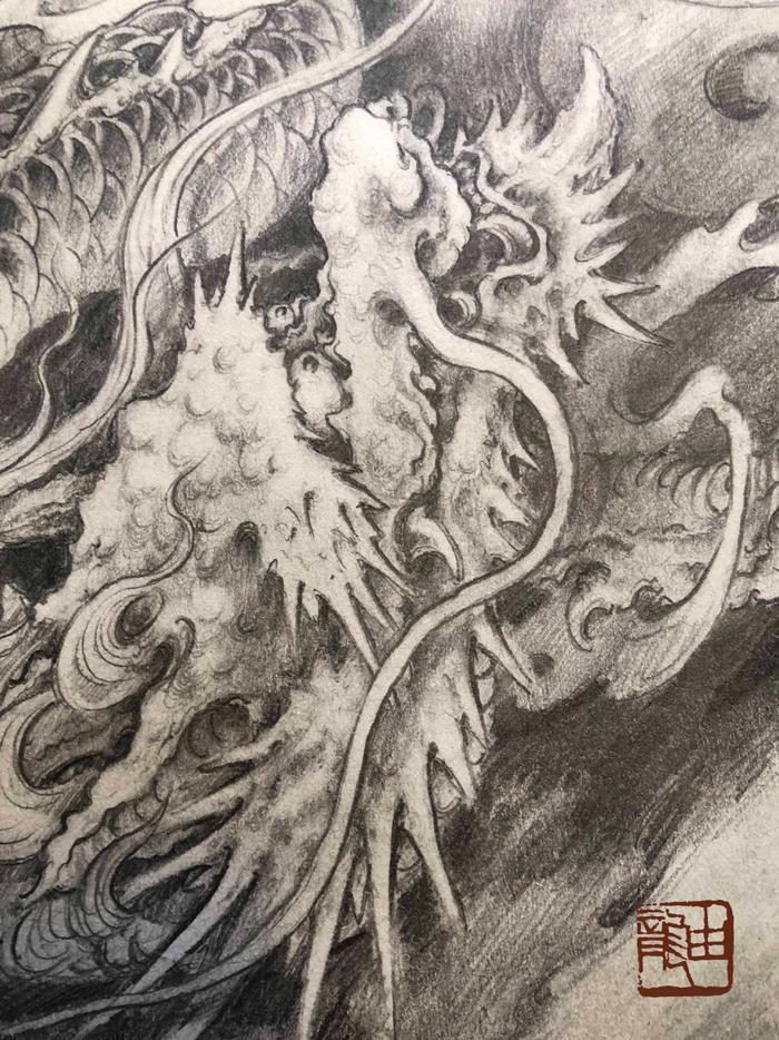 由龙老师画素描中国龙的方法,大概可以遵循以下步骤: