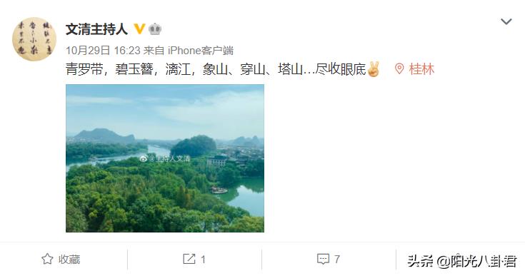 她晒出了家乡桂林的美景,包括定位也在桂林。