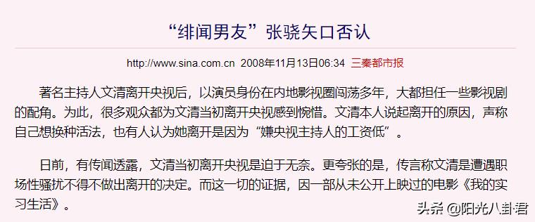 对于离职原因,外界有传文清嫌弃央视主持人工资太低,