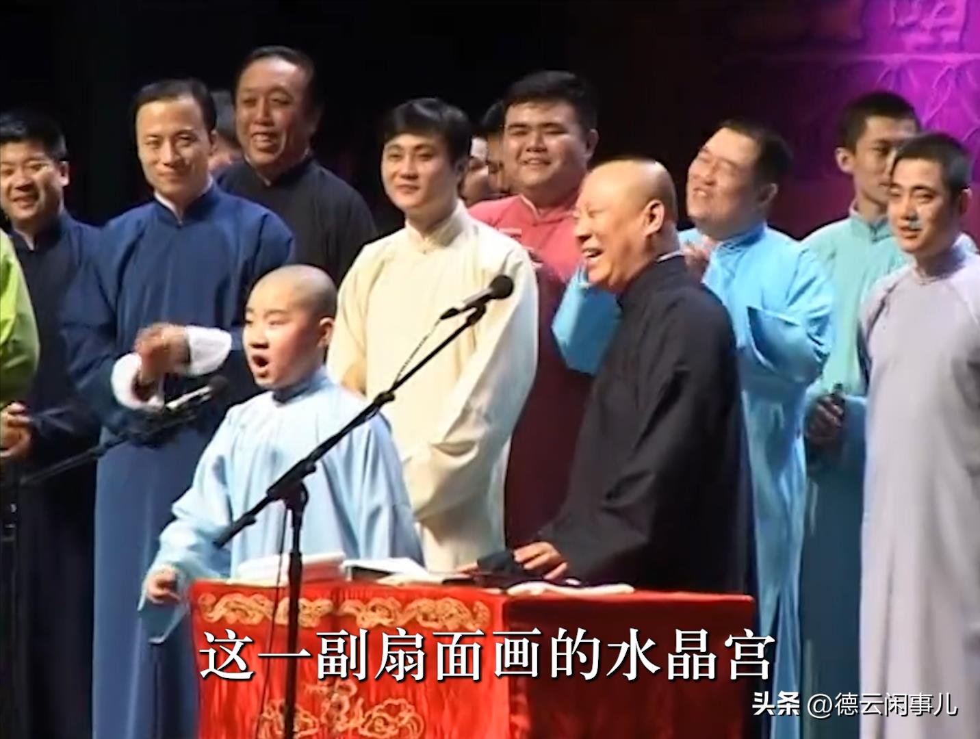 就在这样大型丢脸现场,陶阳越众而出,简单调了下话筒,第一句“这一副扇面画的是水晶宫”唱完,全场炸裂,前面全程黑脸的郭德纲,在这一刻终于露出了笑容。等到陶阳唱完,和声的时候,郭德纲高兴的升了个调。