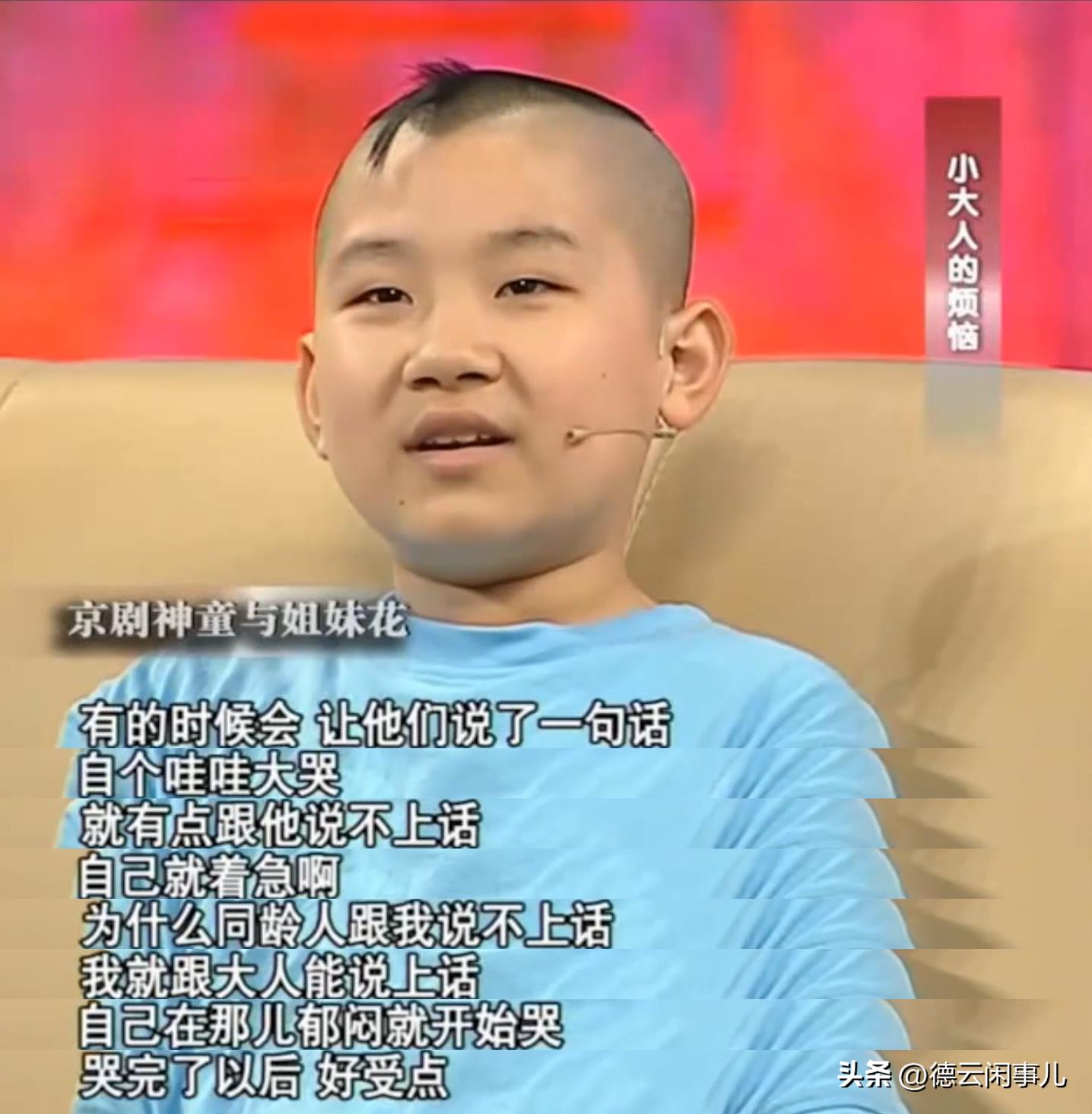 陶阳是京剧神童,从小就痴迷京剧,小时候就一副老先生做派,心理年龄也比较成熟,他跟同龄人之间也有代沟。