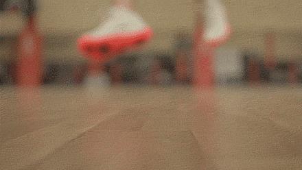 先用一个往返跑的起步测试一下球鞋的抓地力。鞋底上犹如吸盘一般一层一层的设计加大了鞋子本身的抓地力。外线打法的同学不用担心,react的起步没有丝毫拖沓,同时因为鞋底的吸附感会让启动感觉非常爽。