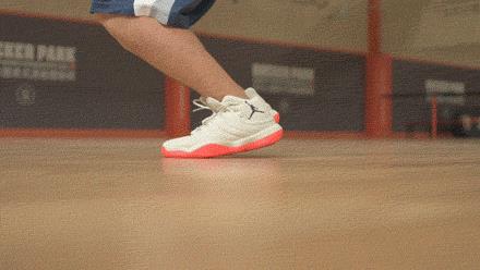 冲刺到篮下完成终结后依然能稳稳落地。落地也没有丝毫拖沓,这还是在新的内场地板。相比AJ31的耐磨型硬底,这一款搭载的定位型橡胶底在抓地力方面做的真是很棒。