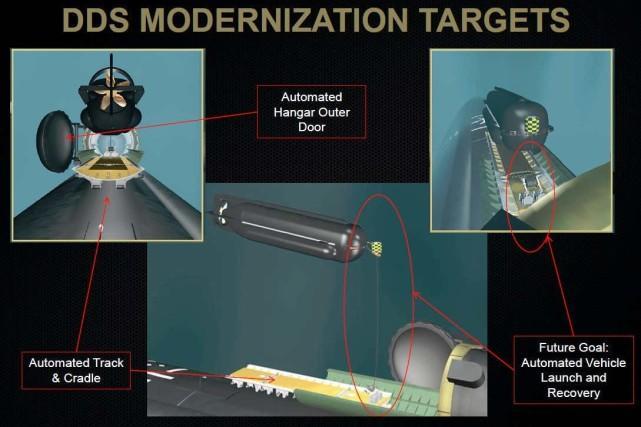 有人提议,可以使用通用发射和回收模块从SSGN发射和回收UUV,这是一种类似电梯的装置,从改进的“三叉戟”导弹发射管延伸出来,用于将有效载荷送入和运出潜艇。