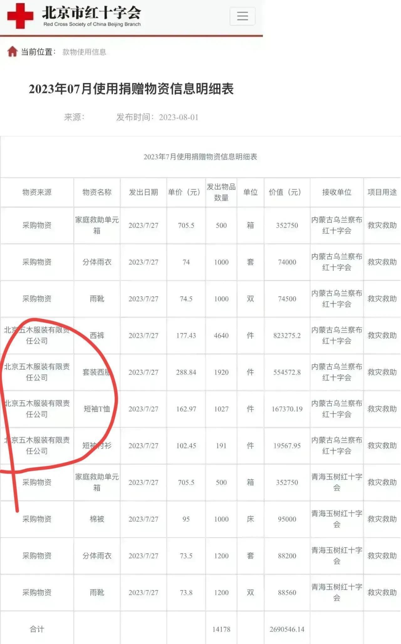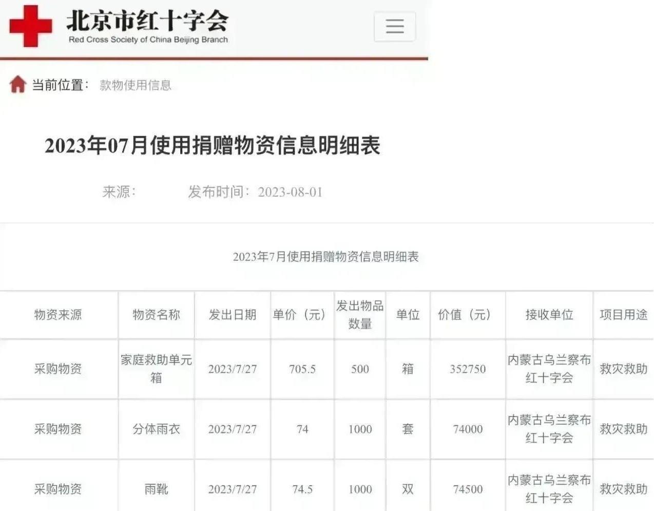 其次就是红十字会7月份的捐赠物资信息列表也引起了人们的关注。