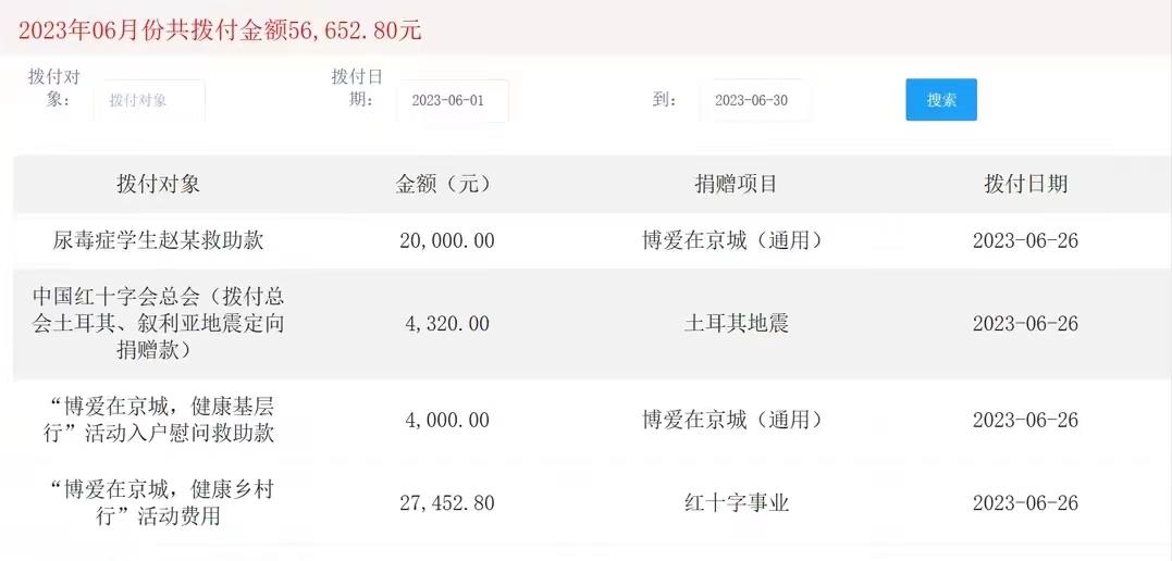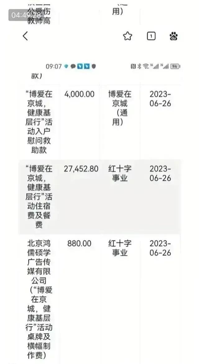 首先是6月份北京市红十字会一次活动的费用明细,引发了人们的愤怒。按网上爆出的明细截图来看,这次活动花费在需要帮助的人身上只有4000元,而他们的住宿和餐费却实际花费了27000元。