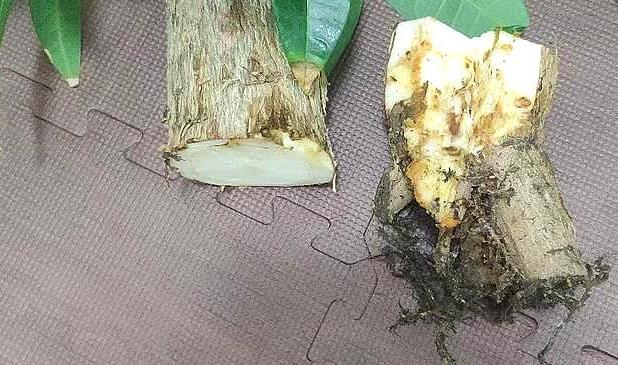 与此同时,在修剪的时候要尽量的保持切口处呈现30度,而且相对的平整一些,这样可以有效地缩短愈合的周期,避免不必要的后患产生。另外,在修剪的时候大家要做到多修剪,将带有一点点腐烂的部分,就全部的修剪掉。