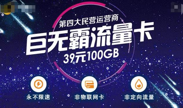 要知道民营运营商的套餐资费,相对于三大运营商来说非常的实惠,尤其是39元100G的套餐更是三大运营商无法比拟的。