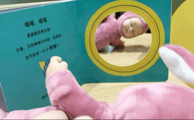 翻开后,出现一面镜子,哇,小怪物原来是宝宝自己呀,哈哈~打个招呼吧