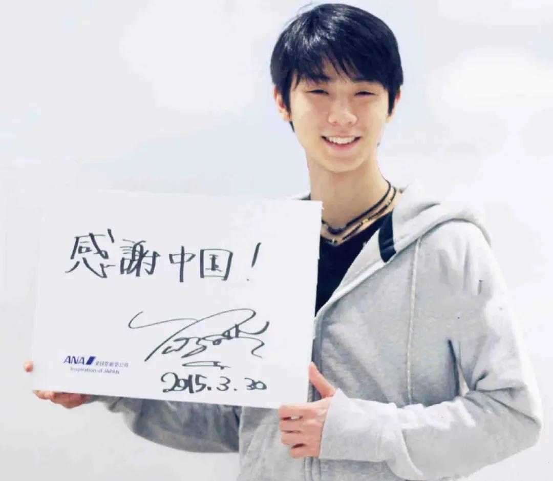 2015年时,羽生结弦曾写下过“感谢中国”。
