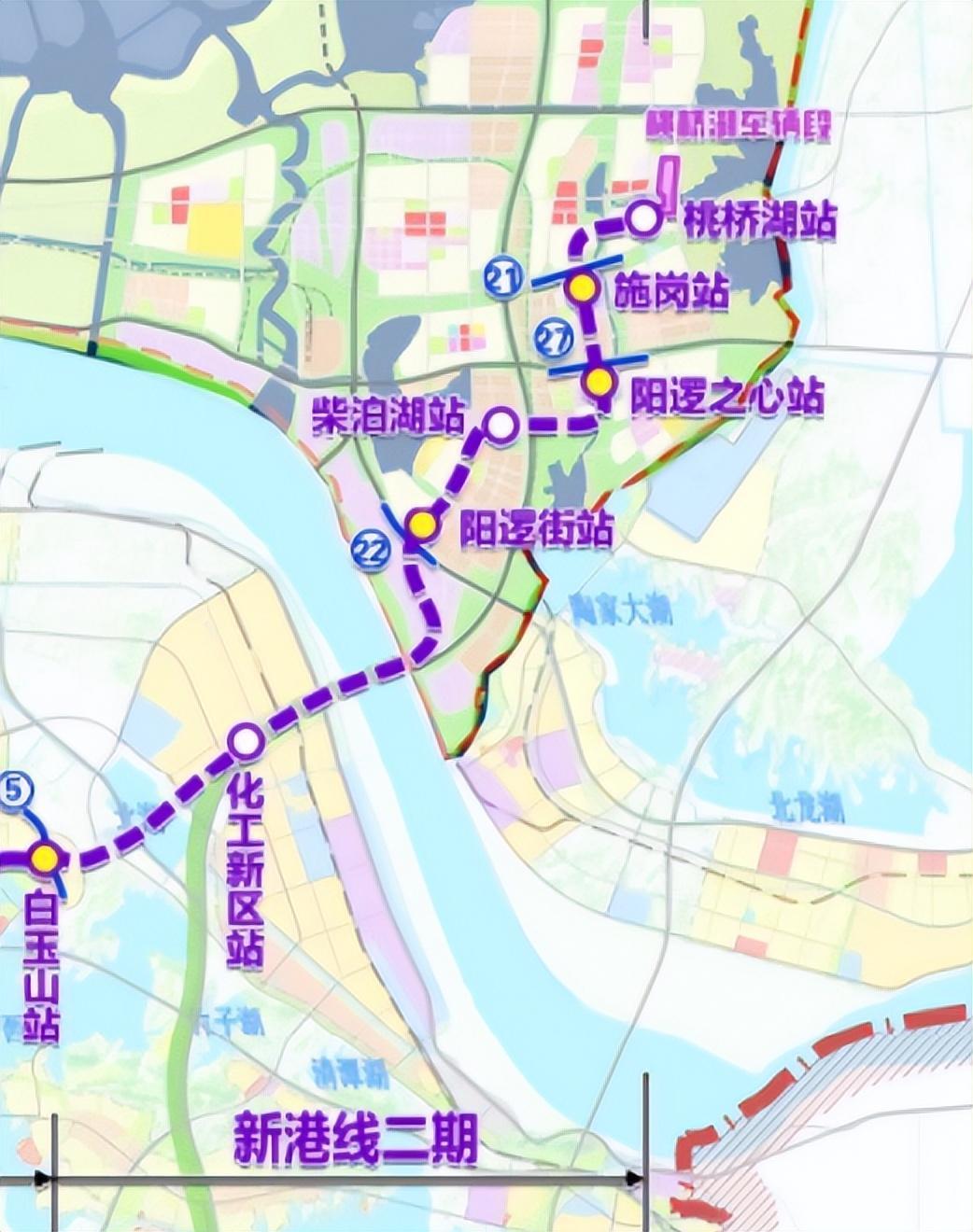 根据线路规划,武汉地铁10号线中的新港线二期从青山白玉山站始发,穿越长江后到达阳逻,线路设置白玉山站、化工新区站、阳逻街站、柴泊湖站、阳逻之心站、施岗站、桃桥湖站,一共7个站点。新港线二期一直备受阳逻区域居民关注,他们一直渴望该线路早日开工建设,因为这条线路开通后,能够极大促进阳逻和青山、洪山等主城区的交通便捷性,拉进阳逻和主城区的距离,同时还方便阳逻区域居民快速到达武汉火车站乘车,该线路对于阳逻的经济、产业和社会发展意义重大。