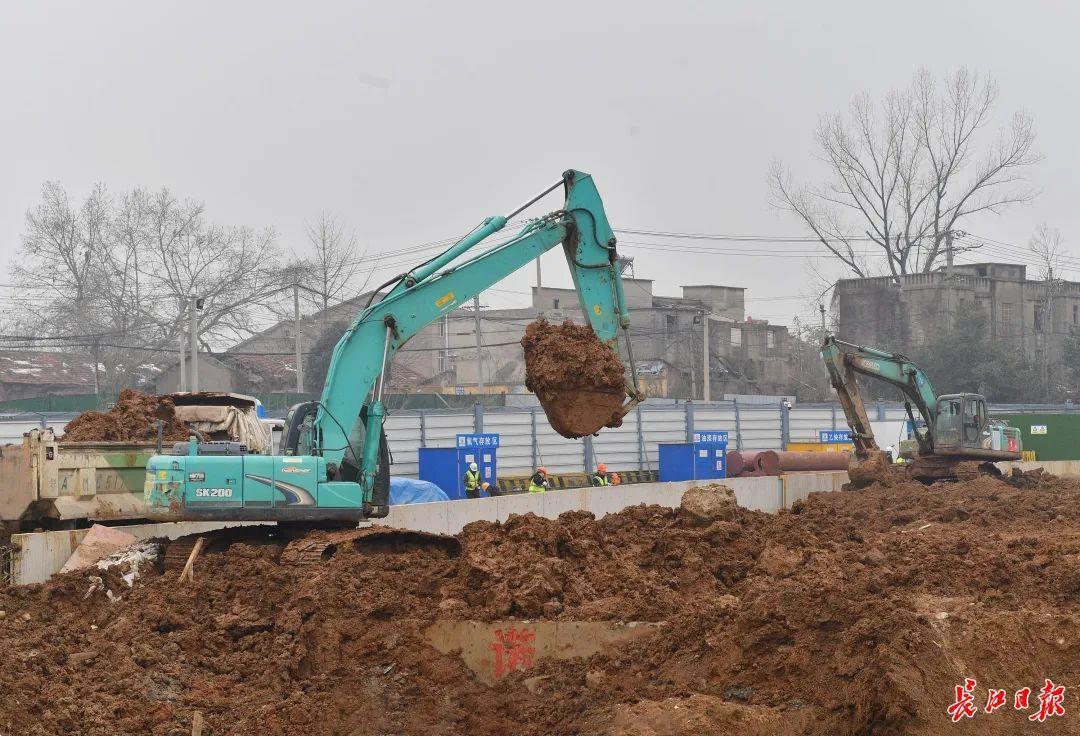 新港线一期工程白玉山站正在开挖基坑