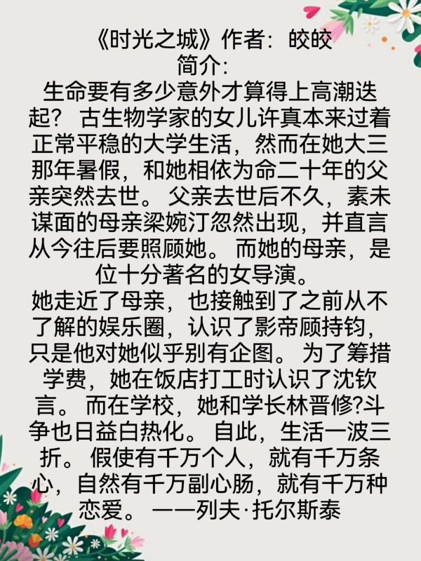 这本是《时光之城》的延续,讲得是《时光之城》里面的沈钦言的故事。