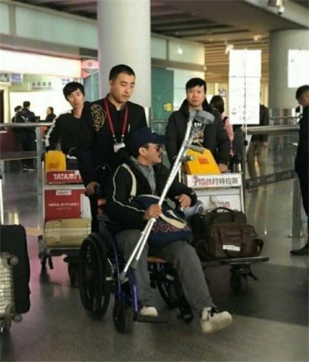标题:吴京坐轮椅现身机场腿伤,原因曝光。
